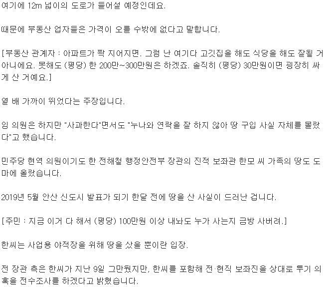 공공 주택 지구 농지를 사들인 뒤, 거액의 보상을 받은 걸로 드러났습니다.