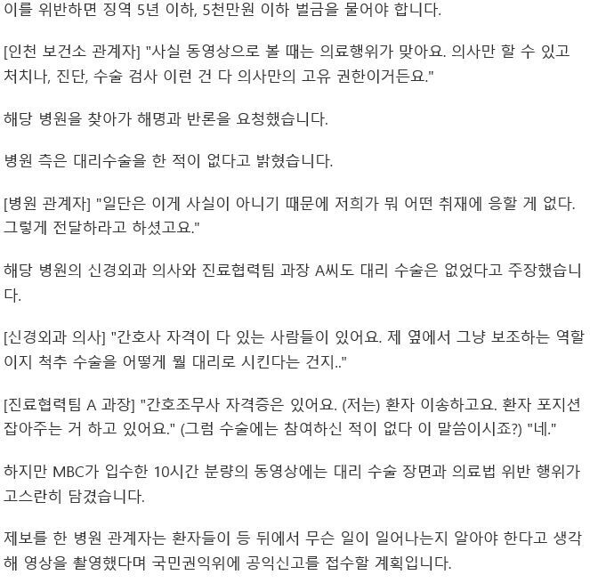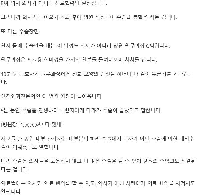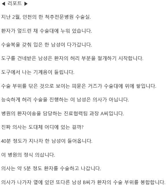 의사가 아닌 병원의 행정 인력들이, 환자의 허리 수술을 대신한다는 건데요.