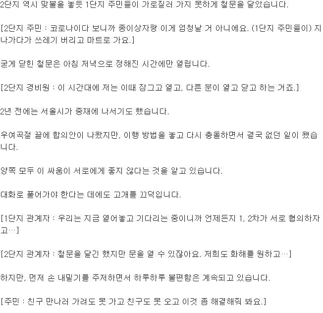 "넘어오지 마" ... 5년 째 쌓인, 아파트 '갈등의 벽' … 무슨 일이?