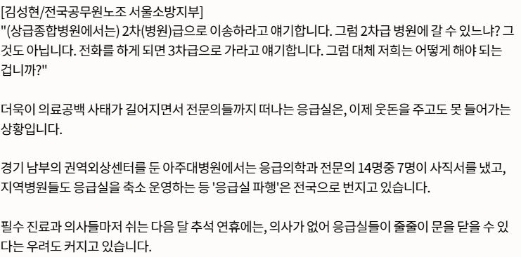 계속되는 의료 공백 탓에, 응급실 들어가기가 힘들어지자,