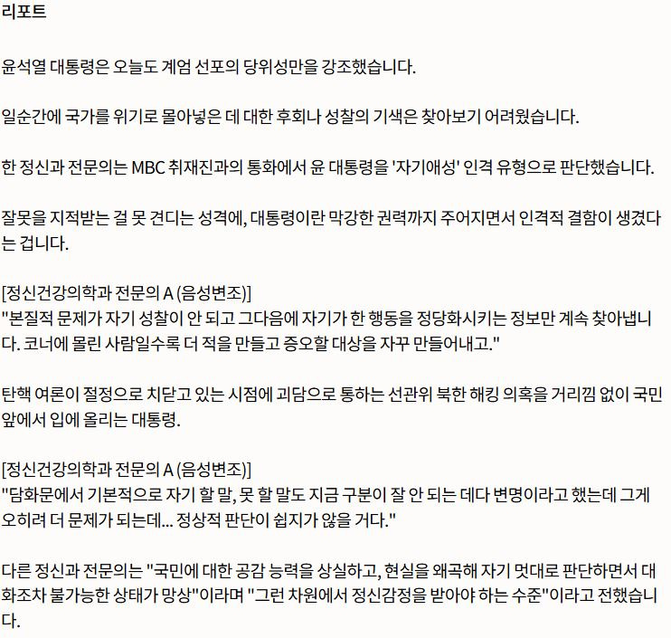 "지적 못 견디고, 공감 능력 상실 ‥ 탄핵만이, 국민 트라우마 치유"