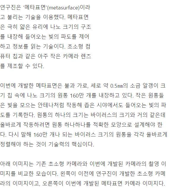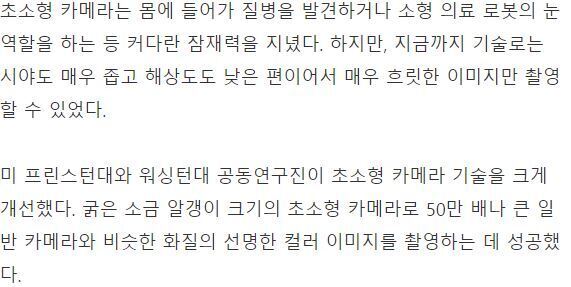 소금 알갱이 크기의 초 소형 카메라 개발 … “스마트 폰 적용 가능”