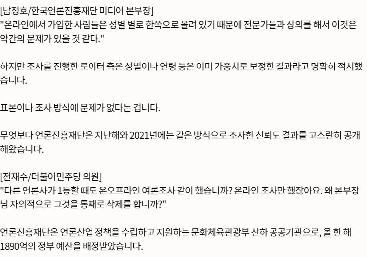 언론 진흥 재단, 'MBC 신뢰도 1위 보고서' 삭제 논란 .. 표본이 문제?