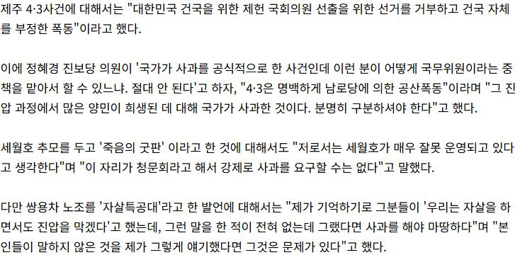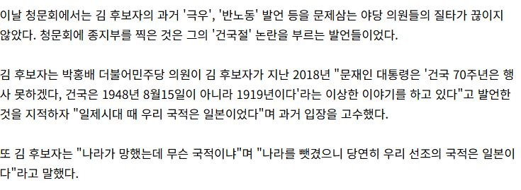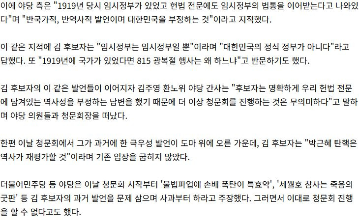"김 후보자는, 헌법을 부정하는 국무 위원으로,
