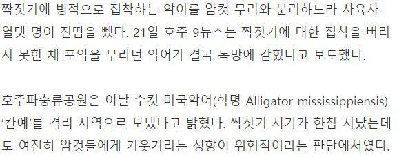 열댓 명이 달라붙어서도, 진땀 … 짝짓기 집착 악어, 독방행