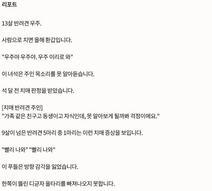 반려견도, 사람도, 치매에 걸리는 원인은 같은데요.