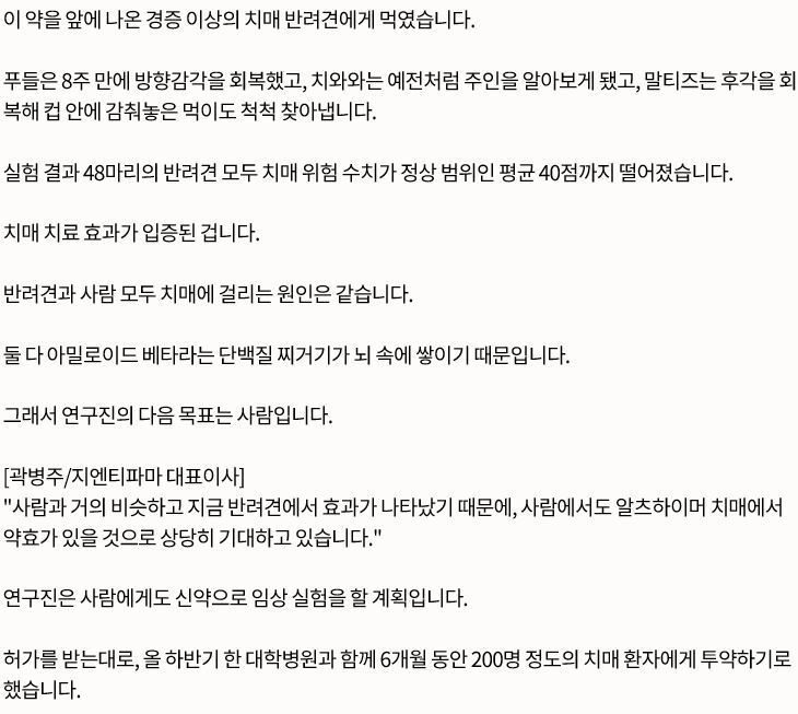 이 치료제가, 사람의 치매도 정복할 수 있을까요?