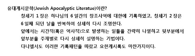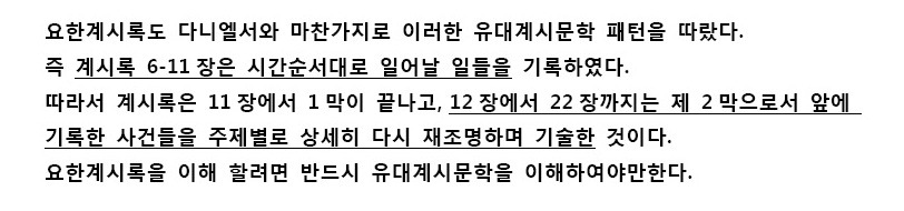 셋째, 요한계시록은 ‘유대계시문학’의 패턴에 따라 기록되었다.