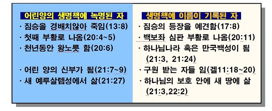 ※ 어린양의 생명책과 생명책의 비교