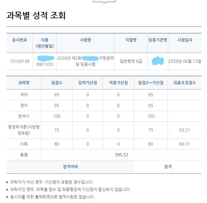저는 다음날 시험장에서 그렇게 했습니다. 영어뿐만이 아니라 모든 과목을 말입니다. 한국사 사회 국어 영어 행정학 순서로 문제를 풀었는데 정말 어려운 문제들 사회의 경제 문제 국어 비문학 지문 문제 행정학은 영어를 35분 쓰면서 10분밖에 남지 않아서 정말 강제 직관적으로 문제를 풀었습니다. 하지만 어쨌든 지방직 결과는 원점수 435점에 조정점수 395.67이 나왔습니다. 8개월 공부한거 치고는 미친 점수가 나왔다고 생각합니다. 제가 잘났다거나 제 머리가 똑똑해서는 절대 아닙니다 왜냐하면 저의 수능 등급은 국어 4 영어 4 수학 4 정치 3 사회문화 3 이니깐요. 그냥 동기쌤이 하라는대로 했을 뿐입니다. 그리고 반복했습니다. 단어 문법 생활영어 독해 모두 반복하고 또 반복했습니다. 매일매일 이렇게한다면 다른 과목이 갖추어져 있다면 영어에 좀 더 투자하신다면 8개월은 결코 적은 시간이 아니라는 생각이 들었습니다. 그래서 공무원 문제 풀이 시간이 많이 빡빡하니 어렵다고 생각되는 문제들은 과감하게 스킵하고 나머지 문제들을 충분히 풀라는 말씀드리고 싶습니다.