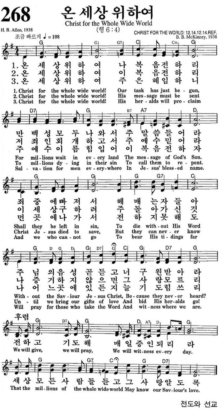 [스크랩] (♬在) (영어 찬송) 268장, 온 세상 위하여, Christ for the Whole Wide World (♬在)