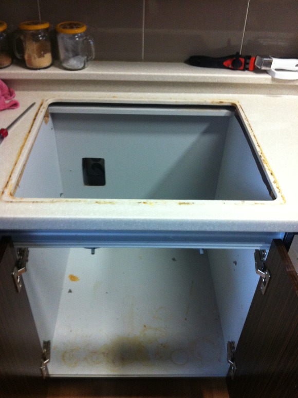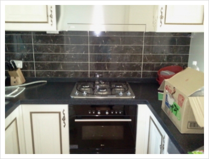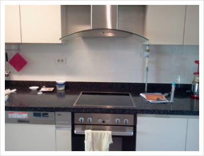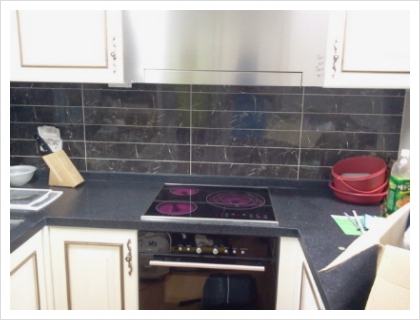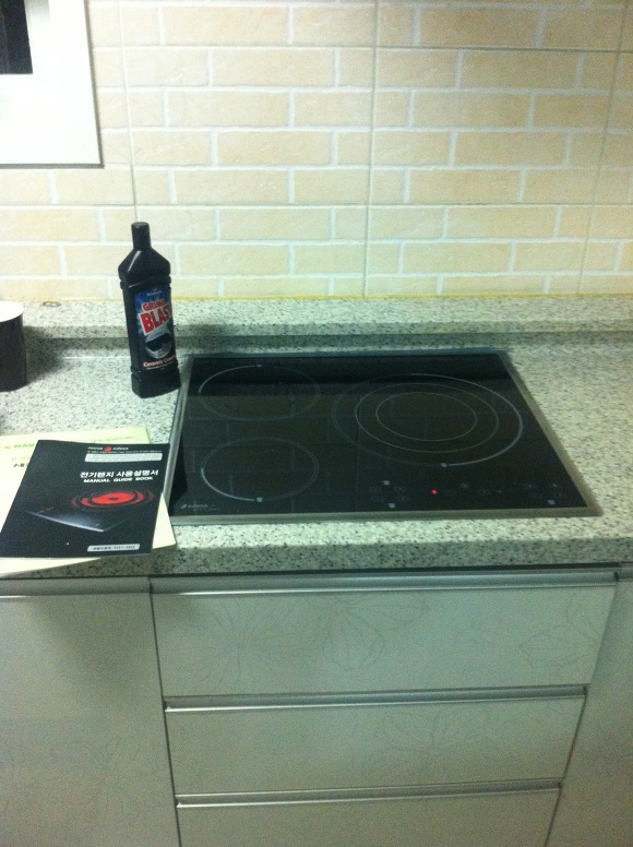 신안 인스빌 리베라는 기존에 와이드형 가스렌지가 설치되어 있기 때문에 밑에 스텐레스 판을 깔고 그 위에 전기렌지를 얹어야 되는 설치유형입니다. (와이드형 가스렌지 때문에 타공이 크게 되어 있음)