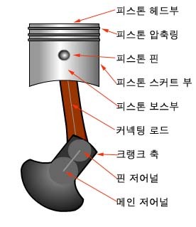 | 피스톤 보스부는 피스톤 핀이 장착되며 두껍게 되어 있다. | |||||||