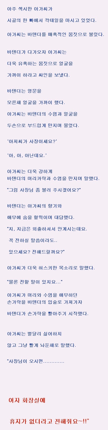 아가씨와 빠텐더 작성자좋은계절|작성시간15.04.07|조회수42 목록 댓글 1 글자크기 작게가 글자크기 크게가 다음검색 현재 게시글 추가 기능 열기 북마크 공유하기 신고 센터로 신고 댓글 댓글 1 댓글쓰기 답글쓰기 댓글 리스트 작성자도시농부 | 작성시간 15.04.07 ㅋㅋㅋ대박이다 댓글 전체보기