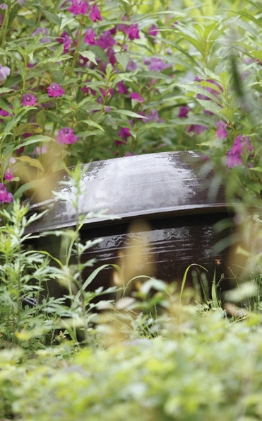 2 꽃밭 사이에 숨은 옹기.옹기는 부엌뿐 아니라 정원에도 잘 어울린다.