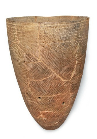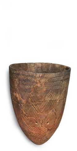 우리나라 최초의 옹기. 가죽 주머니에 음식을 담던 선조들이 신석기 때부터 흙을 이용해 그릇을 만들어 썼다. 땅에 묻어 쓰려고 밑 부분을 뾰족하게 만들었다.