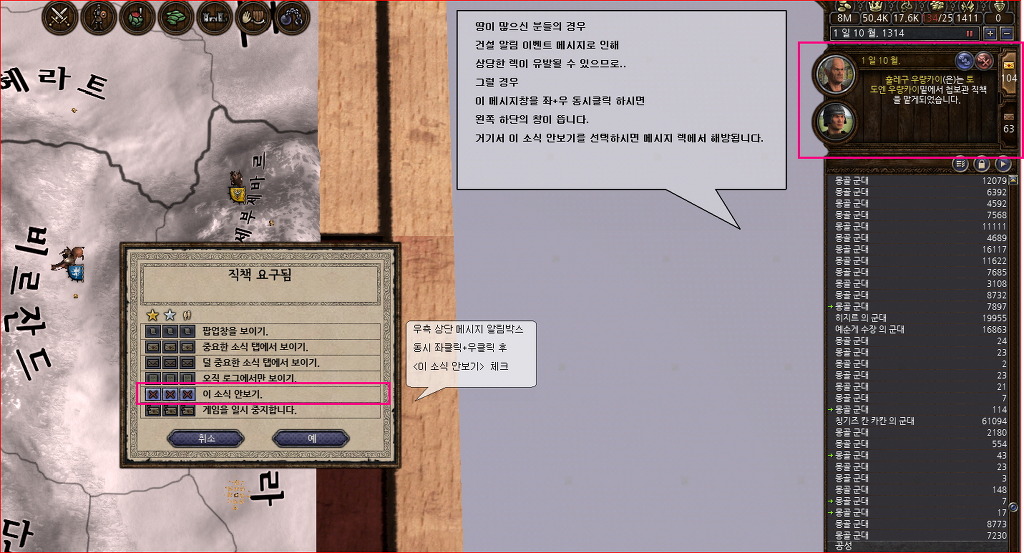 건설 알림 메시지가 많이 떠서 렉이 발생하실 경우..