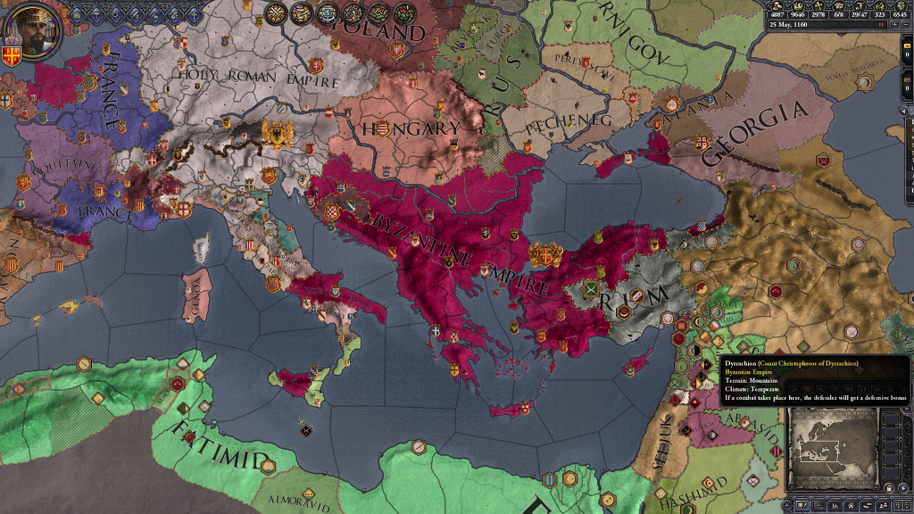 그리스도의 해로 1160년, 알렉시오스 1세 콤네노스와 스테파노스 "뚱땡이" 2세 콤네노스의 치하에서 제국은 발칸의 영토를 대부분 회복했습니다. 크로아티아는 바람 앞의 등불과 같은 신세입니다. 다음 목표는 시칠리아와 이탈리아, 건방진 로마 주교를 몰아내고 하나의 제국, 하나의 보편 교회라는 원칙을 바로 세울 것입니다.