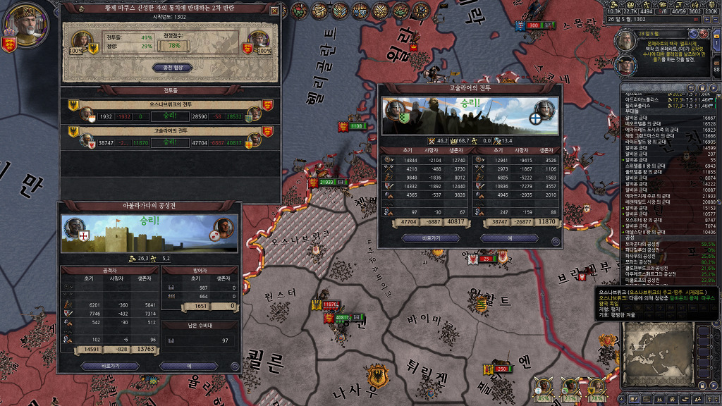 성전을 실시할때는 되도록 다른 세력과 국경을 접할 수 있는 공작령을 위주로 하고 있습니다.