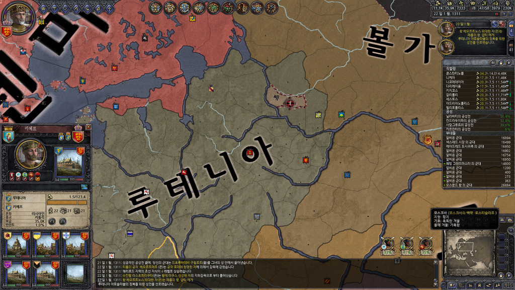2개 남은 페름의 공작령중 하나는 이미 볼가 불가리아가 차지했고, 다른 하나는 루테니아 왕이 차지하기 위하여 성전을 선포하였네요. 매우 좋군!