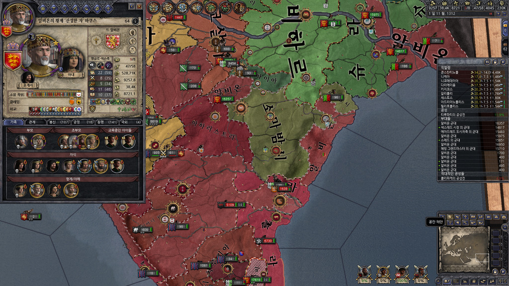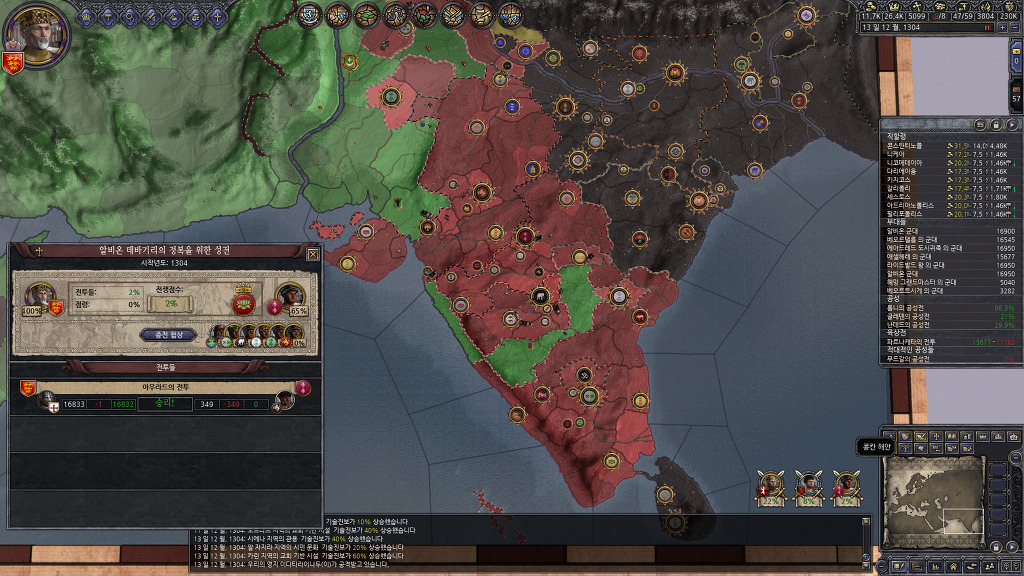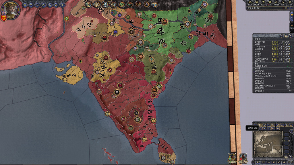 되도록 동시에 많은 세력을 상대로 성전을 걸려고 했었기 때문에 인도에서알비온이 차지한 지역이 다소 지저분하긴 합니다만, 곧 깔끔히 정리할 수 있겠네요.