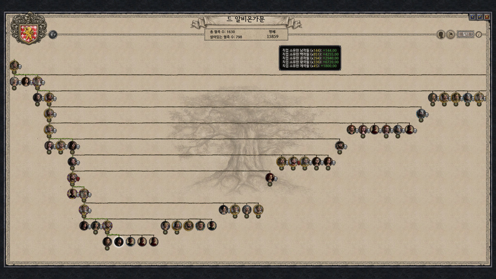 26년간 통치하였으니, 가문원이 다소 늘어났네요. 하지만 아직 살아있는 혈족은 6백명선에 불과하군요..
