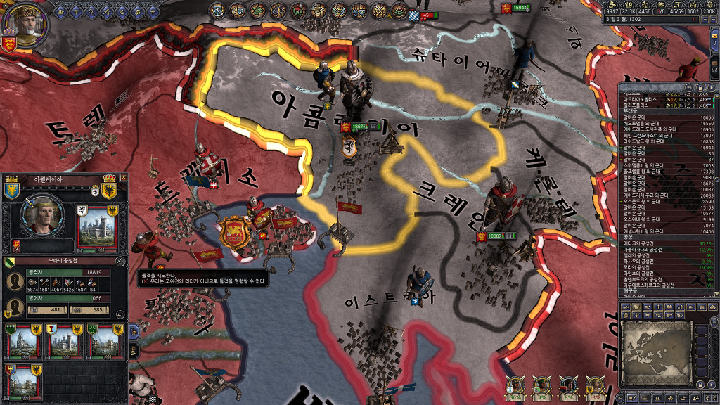 대체 왜 독일 영토에 다른 봉신의 상비군이 있어서 공성시 돌격을 할 수 없게 만들었나요??