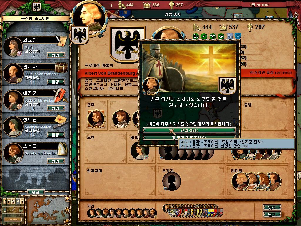 열성적인 신앙을 가진 그였지만 점점 커가는 자신의 힘과 권력에 의해 자신의 나라가 더 중요하다 생각하게 된 그에게 교황은 십자군의 의무를 보내왔다.