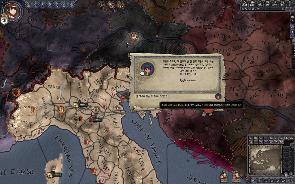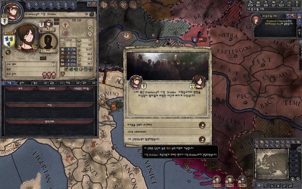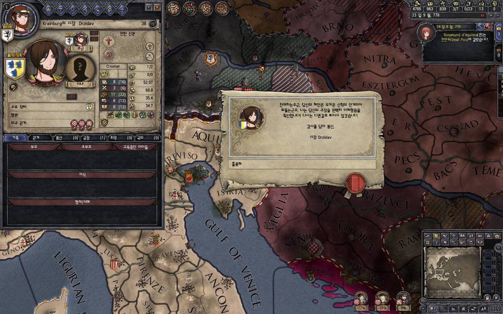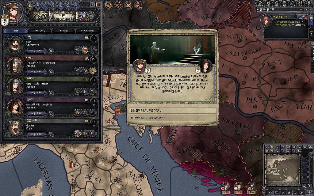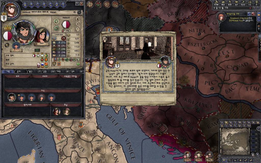지난 5월 15일 버전에서 추가했던 이벤트입니다. 고아를 다른 군주에게 보내는 이벤트를 안 쓰고 있다 보면, 이런 식으로 오히려 상대 군주들이 고아를 데려가겠다며 찾아오는 경우가 발생합니다. 한번 어떤 눔이 왔는지 가 보도록 하겠습니다.