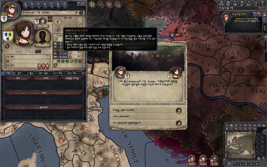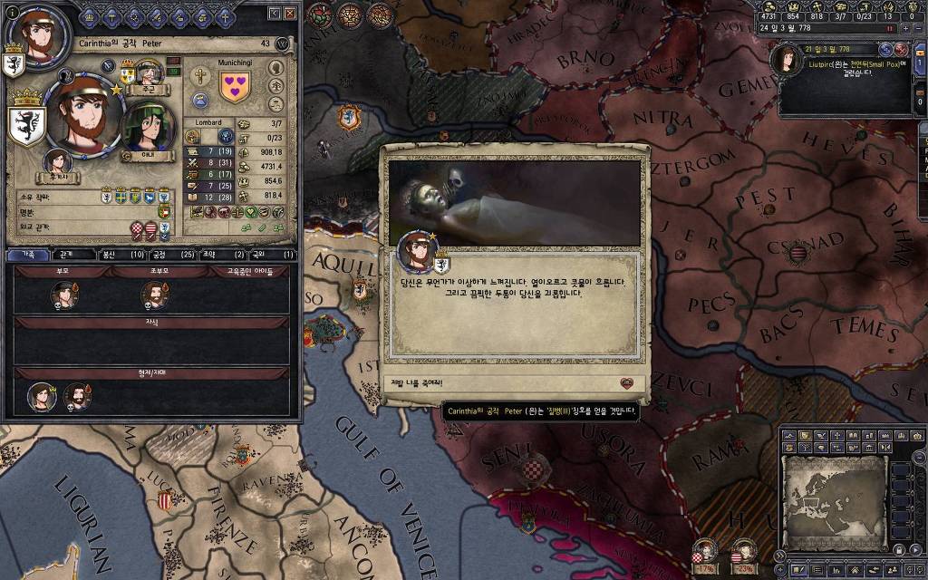 갑자기 재무관이 사망해서 공석이 생겼습니다. 창궐하는 천연두 때문인가 하고 캐릭터창을 열어봤더니 사망원인은 매독.. 주교란 인간이... (하지만 Crusader Kings 2 의 세계에선 성행위와 관계 없이 매독이 생기기도 하기 때문에 ....)