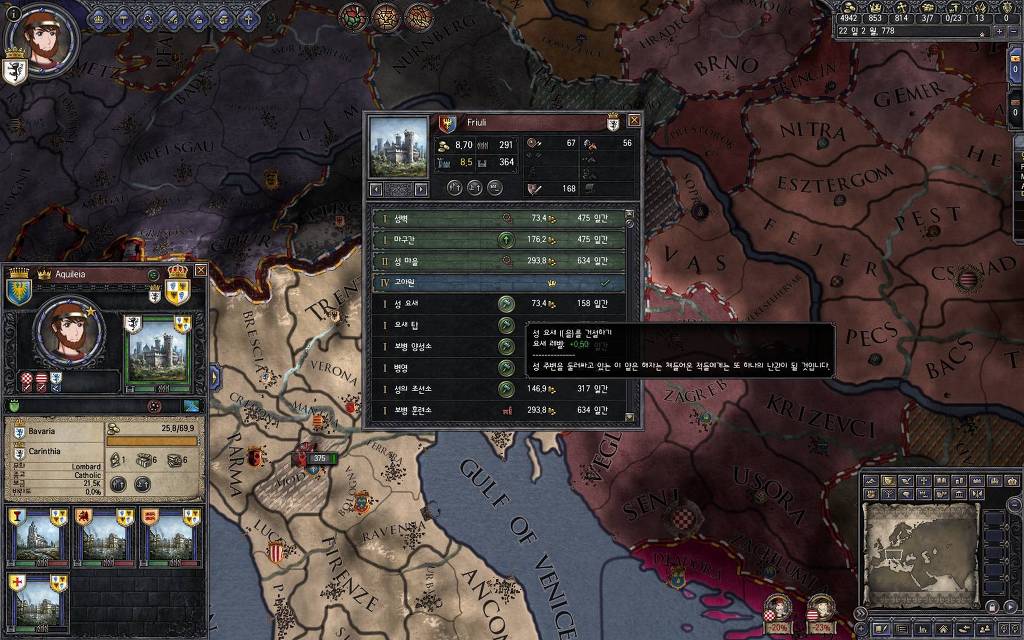 수도의 건물은 틈틈이 눌러줘야 나중에 병사 뽑기 좋죠. 언제까지나 용병에 의존할 순 없잖아요?