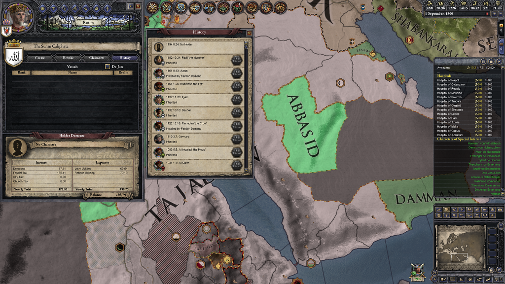 한때 이집트, 예루살렘, 아비시니아, 아라비아를 지배하던 파티마朝가 퇴폐도 반란으로 붕괴되었는데, 거대한 제국답게 왕족들이 대영주로서 각지에 존재했고, 결국 얘들이 모두 들고 일어나면서 퇴폐도 반란으로 성립한 타잣딘朝가 일부 분열되었습니다.