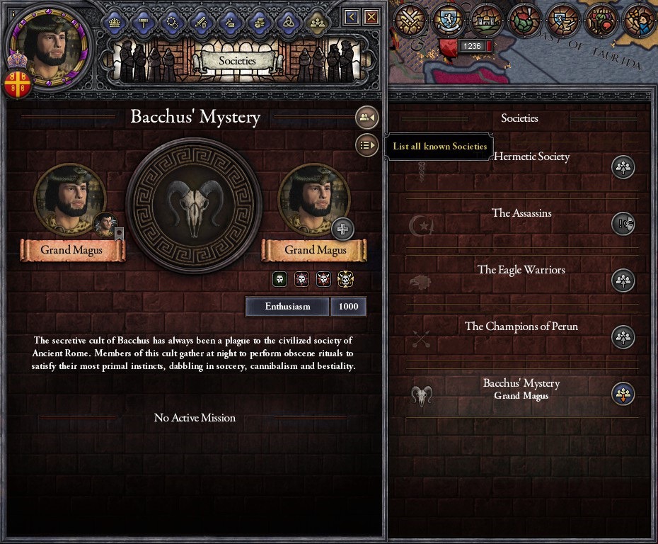 개혁 후 성지가 모두 있고 1100년 이후일 때 디시전으로 기사단도 만들 수 있고, 그리스신화 전사단과 스토아 학파, 바쿠스 컬트도 만들 수 있습니다. 바쿠스는 디시전 뜬 걸 보고 곧바로 눌러서 조건은 확인 못 했는데 옷이 다른 악마숭배 컬트보다 튀네요.