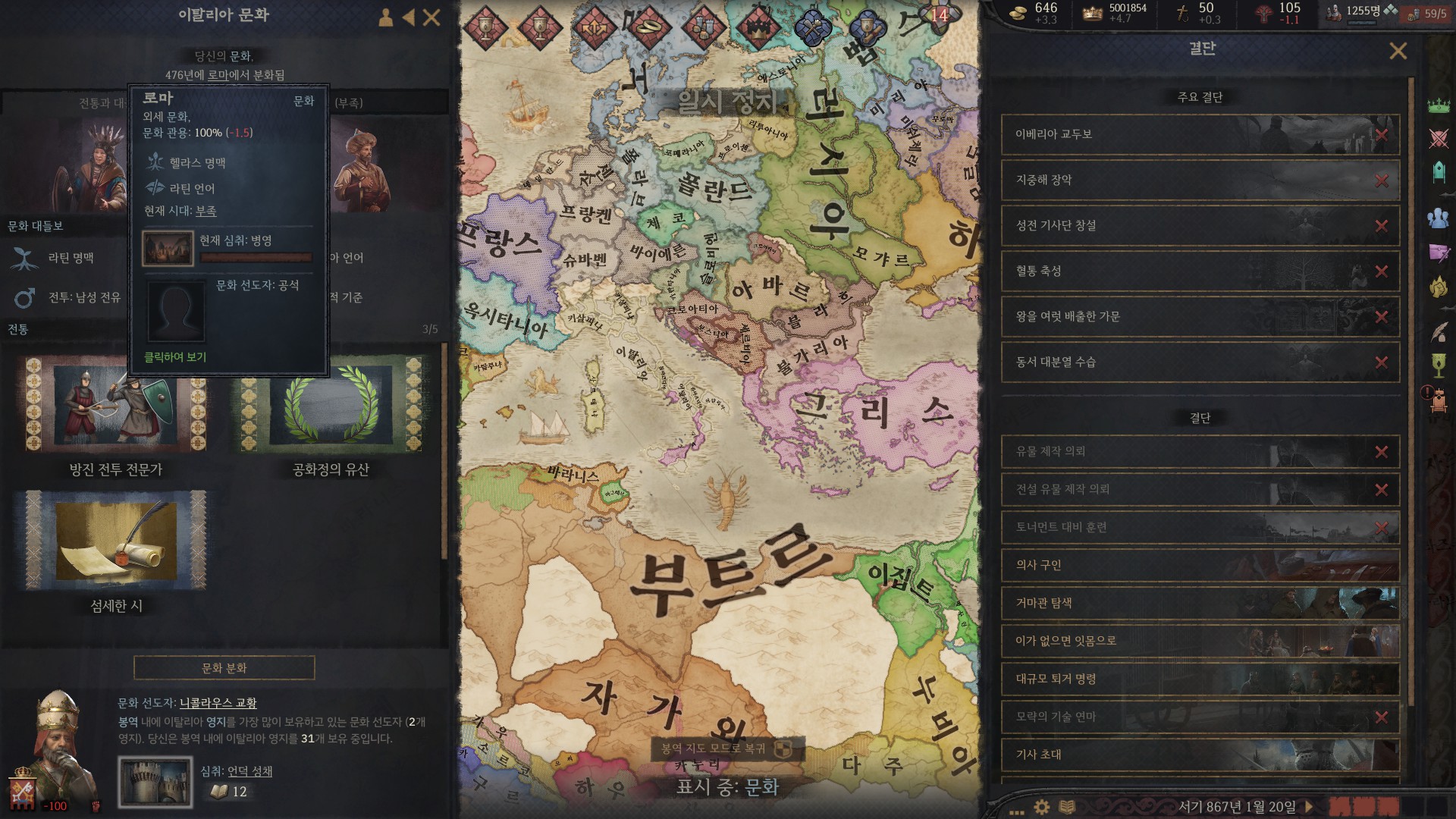 영광급 전설이 생기더군요. 그리고 비잔티움 역시 문화 변경 디시전이 없는건 똑같습니다.