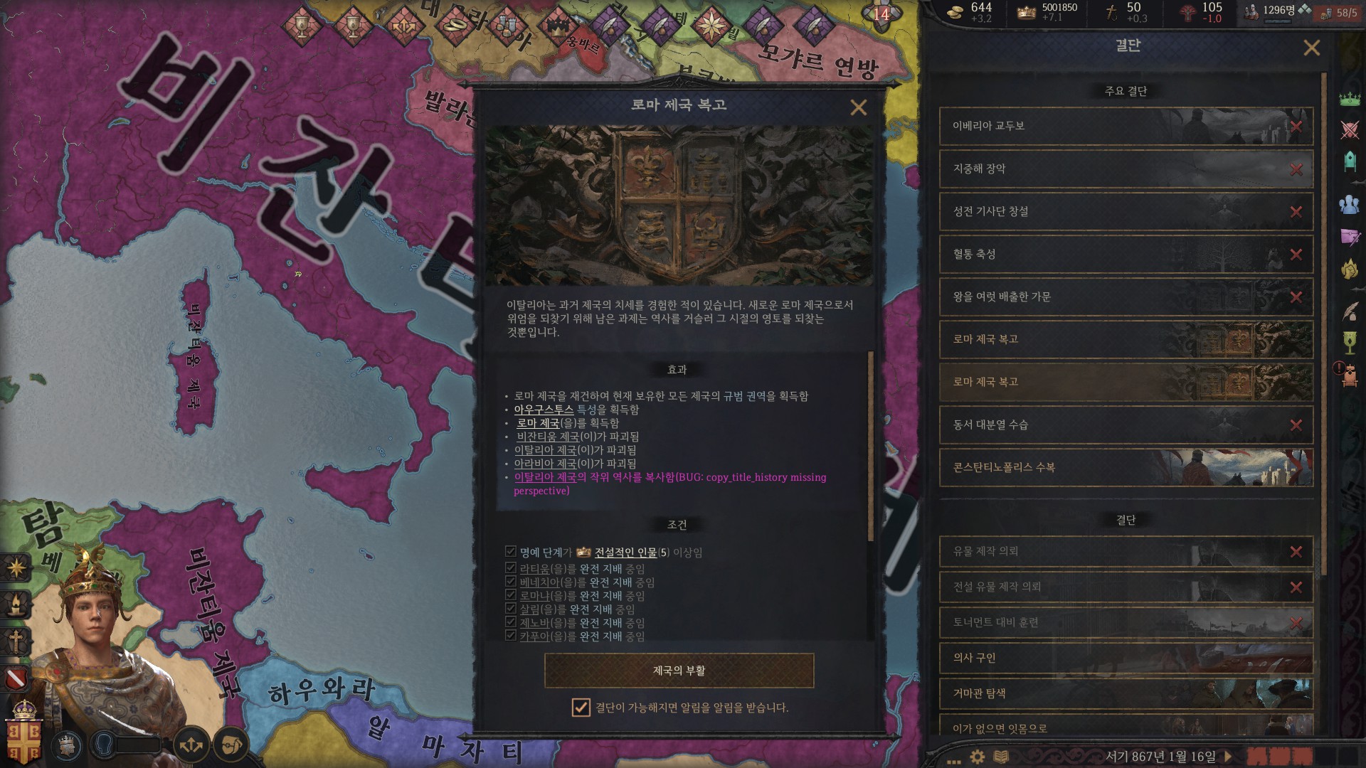 비잔티움 제국으로 복고 시도 할 경우 전설의 연원이 하나 생기는걸 확인했습니다.