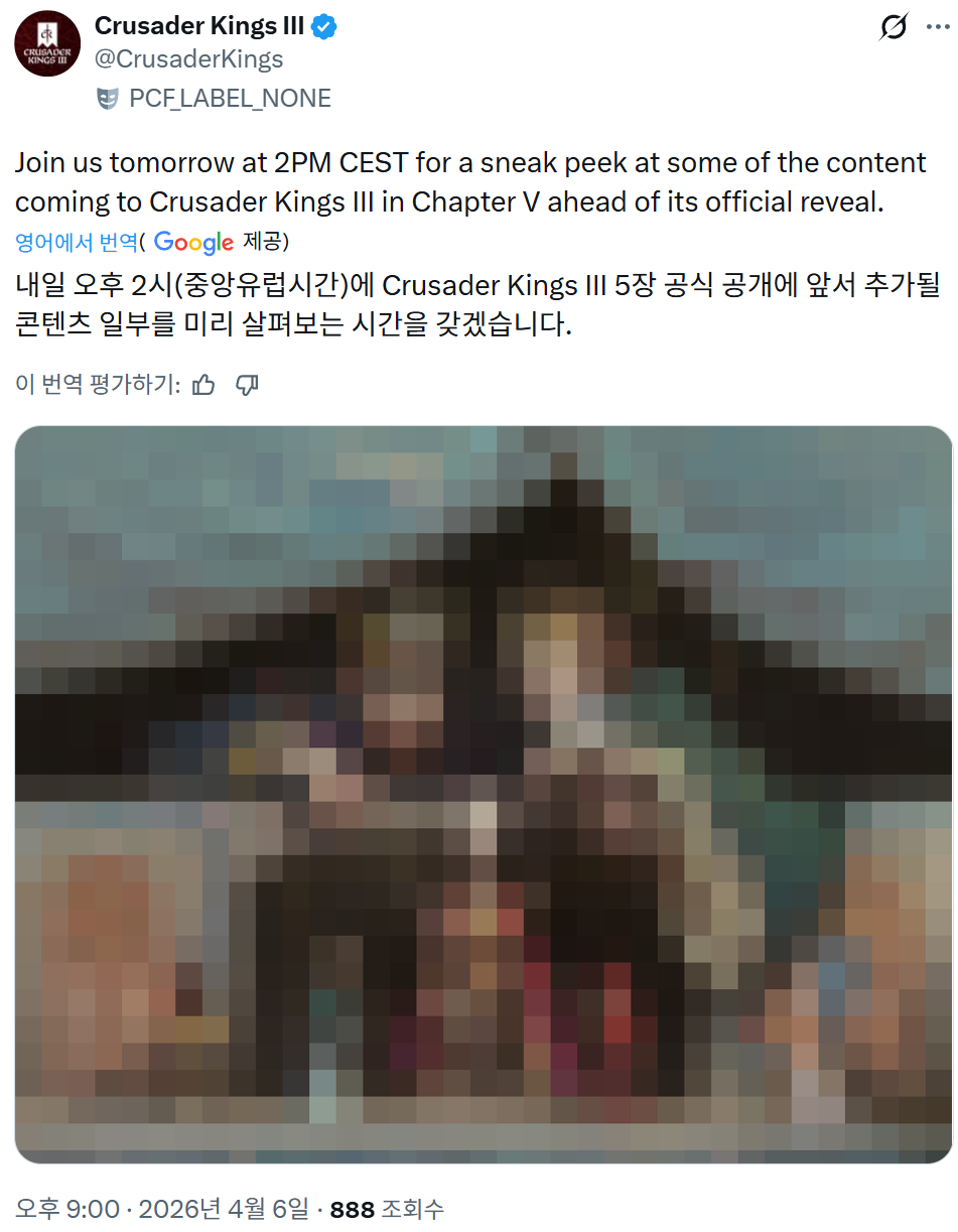 [CK3]마참내 내일 챕터 5 공개 작성자아이로봇 MK.2|작성시간26.04.06|조회수142 목록 댓글 1 글자크기 작게가 글자크기 크게가 그래서 이번은 신롬인가 다음검색 현재 게시글 추가 기능 열기 북마크 공유하기 신고 센터로 신고 댓글 댓글 1 댓글쓰기 답글쓰기 댓글 리스트 작성자A.E.I.O.U | 작성시간 26.04.06 댓글 전체보기