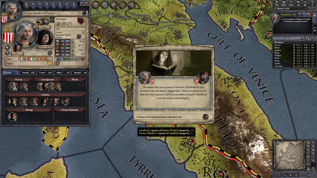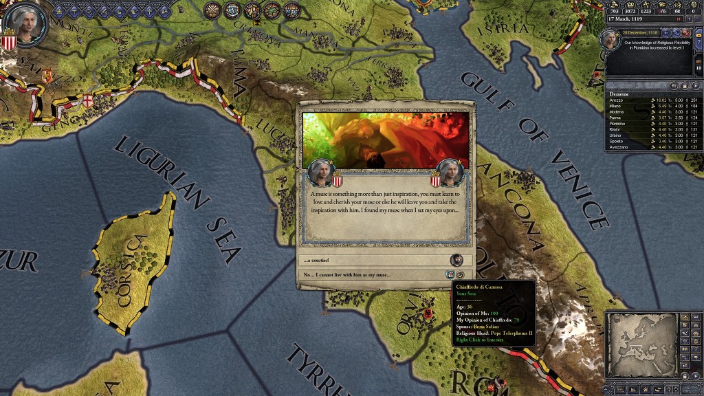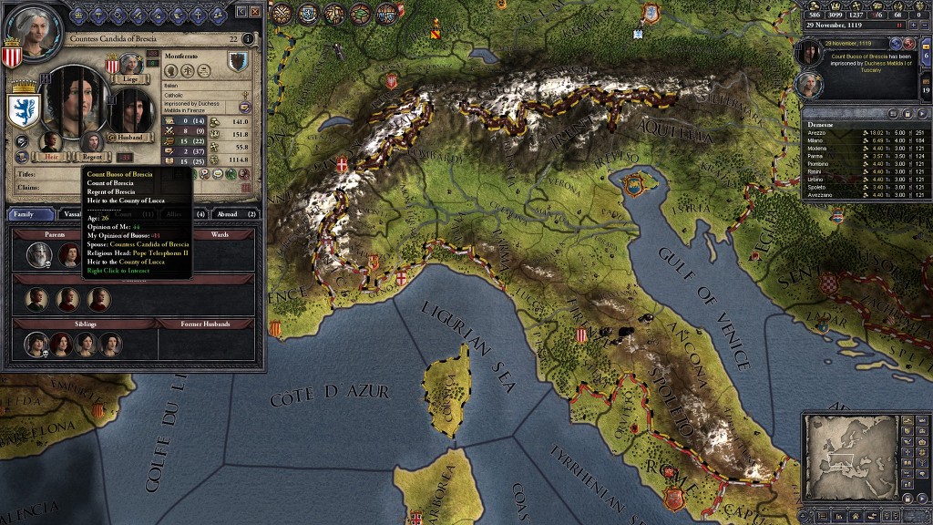 이탈리아 왕국 먹고 de jure 전쟁질을 할까 했는데, 왕국 만들고 나면 계승법 고치기까지 또 10년을 기다려야 하더군요.