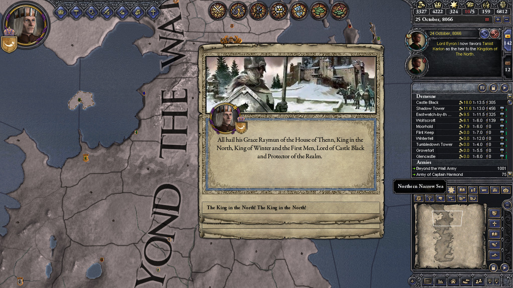 떨어져 나가기 시작한 것도 웨스테로스 왕국으로 변환 디시젼 키고 나서니, 와이들링으로 하면 웨스테로스 왕위는 얻을 필요가 없을 듯.