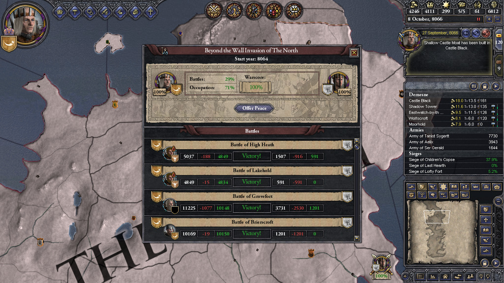 나이트와치를 먹고 나니까 왕국에서 추방당한사람들이 봉신으로 모여서 드래곤라이더로 장군구성해서 죄다 때려잡은건 안 비밀;