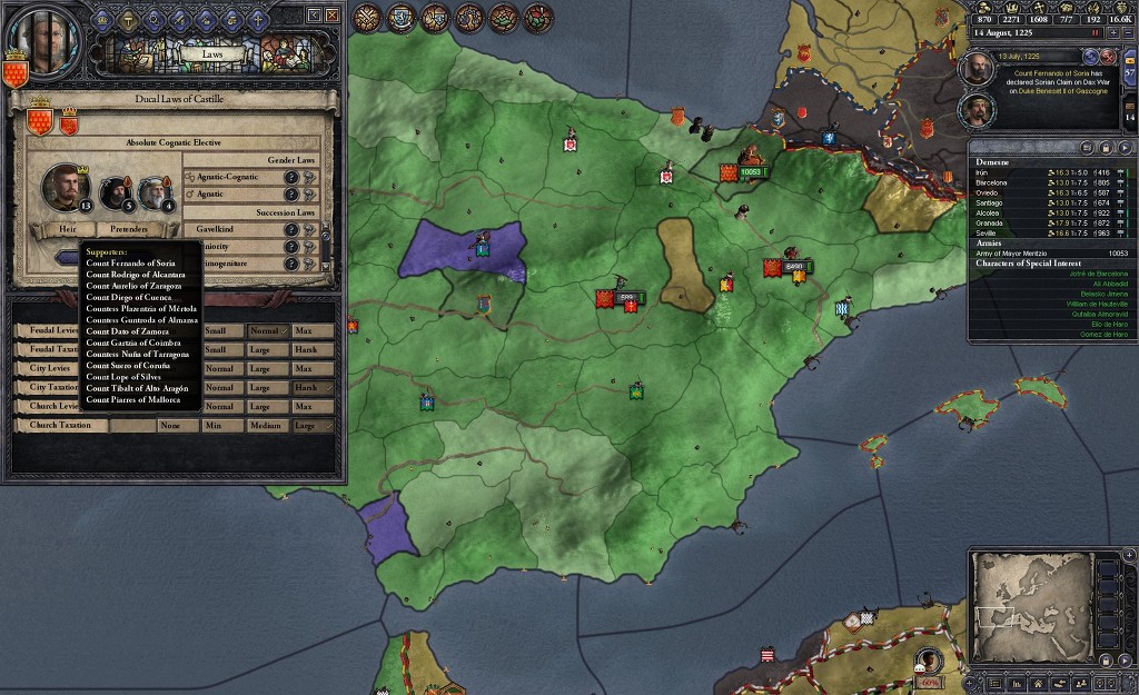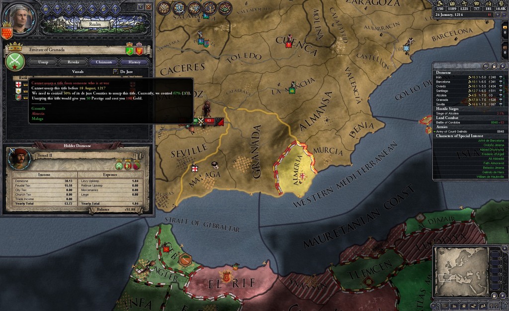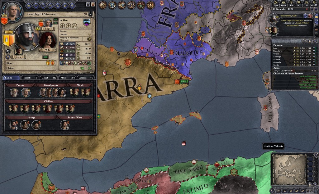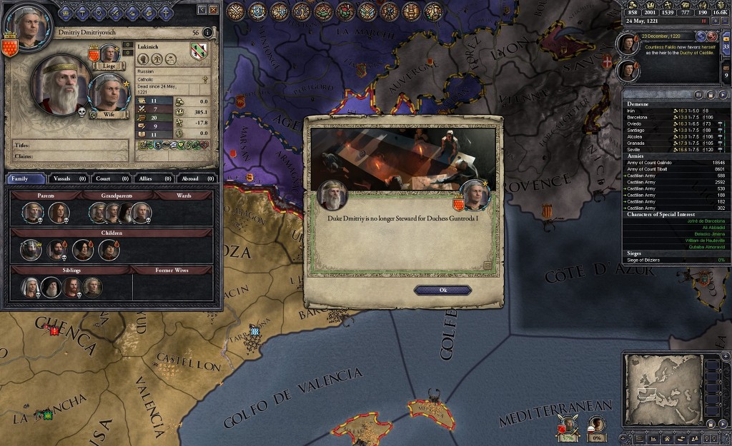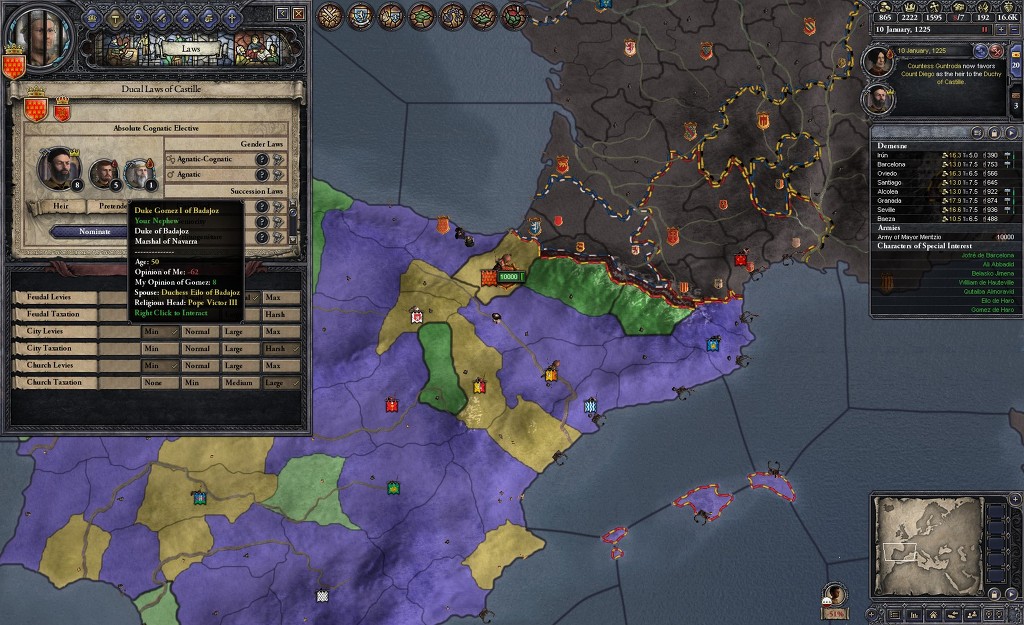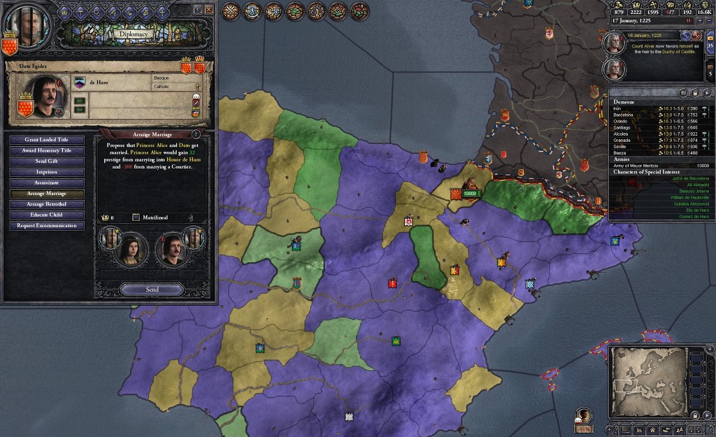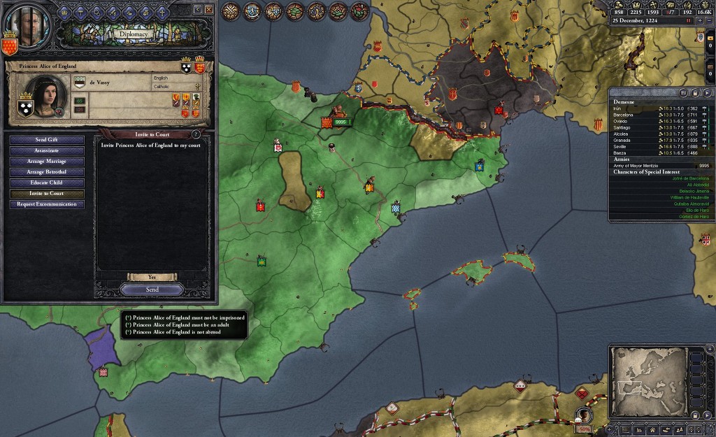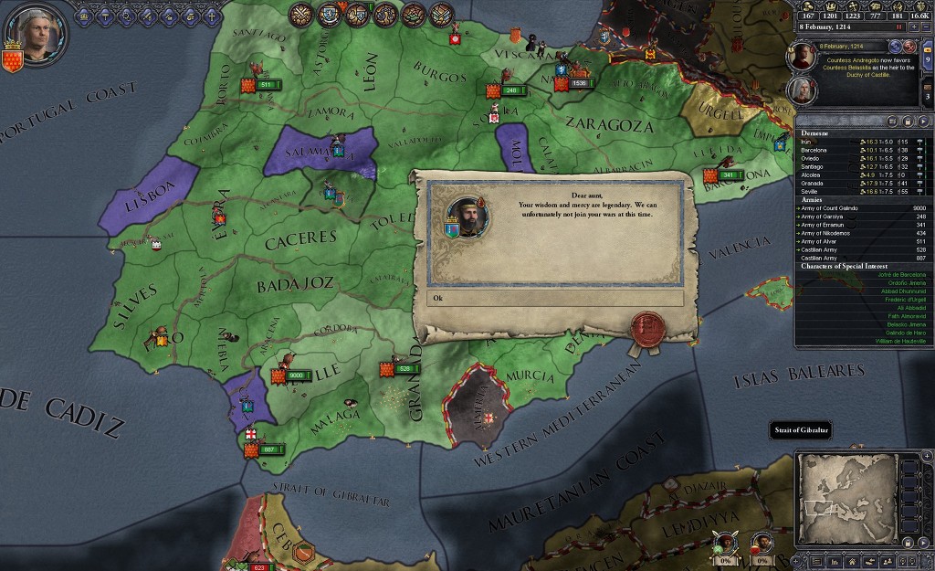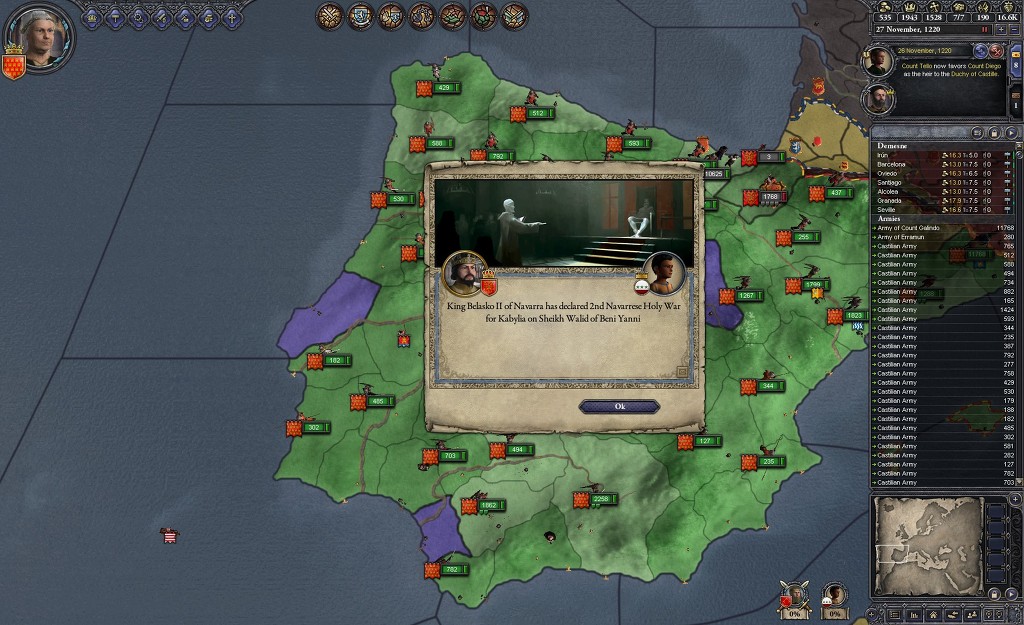 2013-03-08_00001 1220년 3월 2일 어미의 뜻을 알았는지 두 딸이 경쟁적으로 알메리아 백작령에 대한 클레임 확보에 성공합니다. 큰딸의 클레임으로 공략하기로 합니다. 작은딸은 일반 결혼을 하였기 때문에 자연 세습이 안되어서 자꾸 자식에게 타이틀을 줘 버리네요