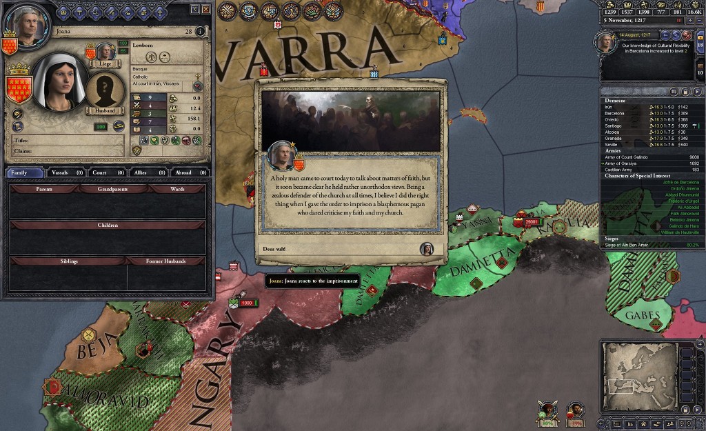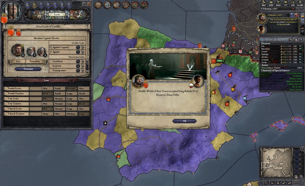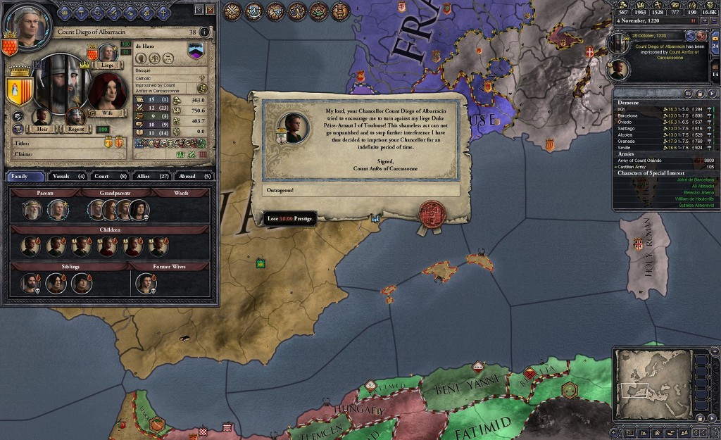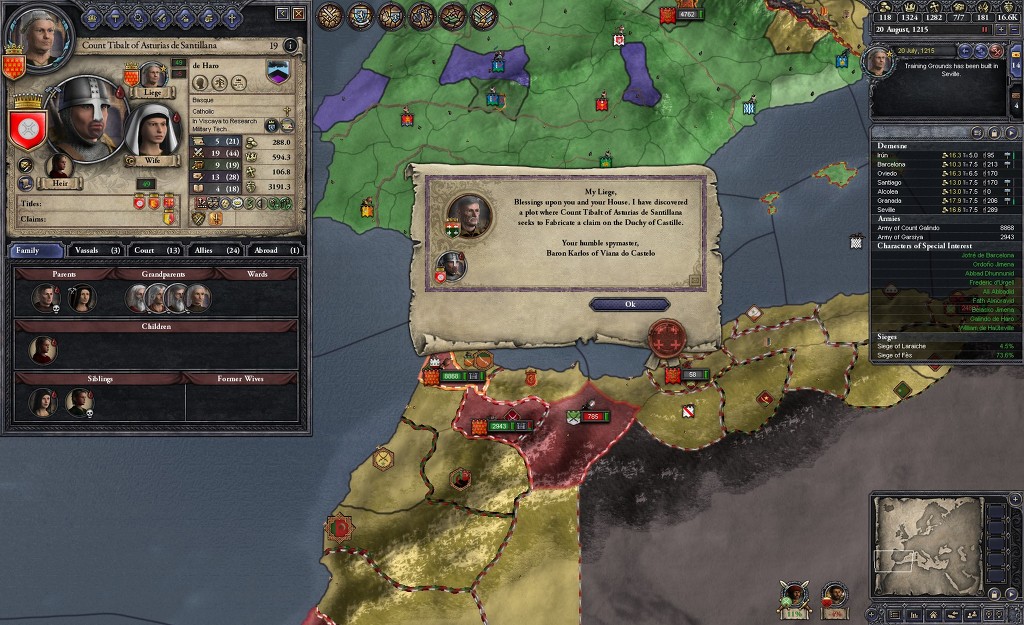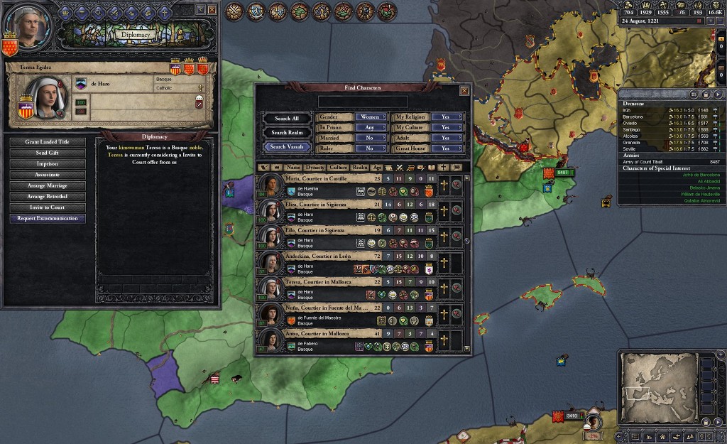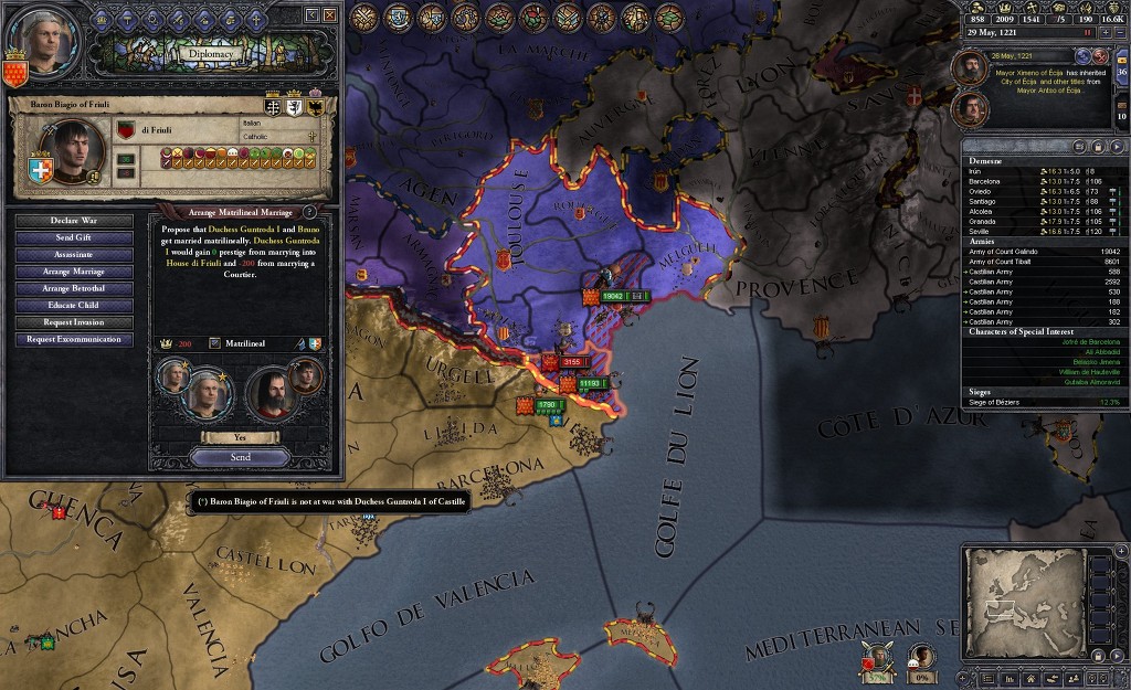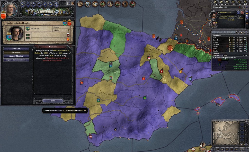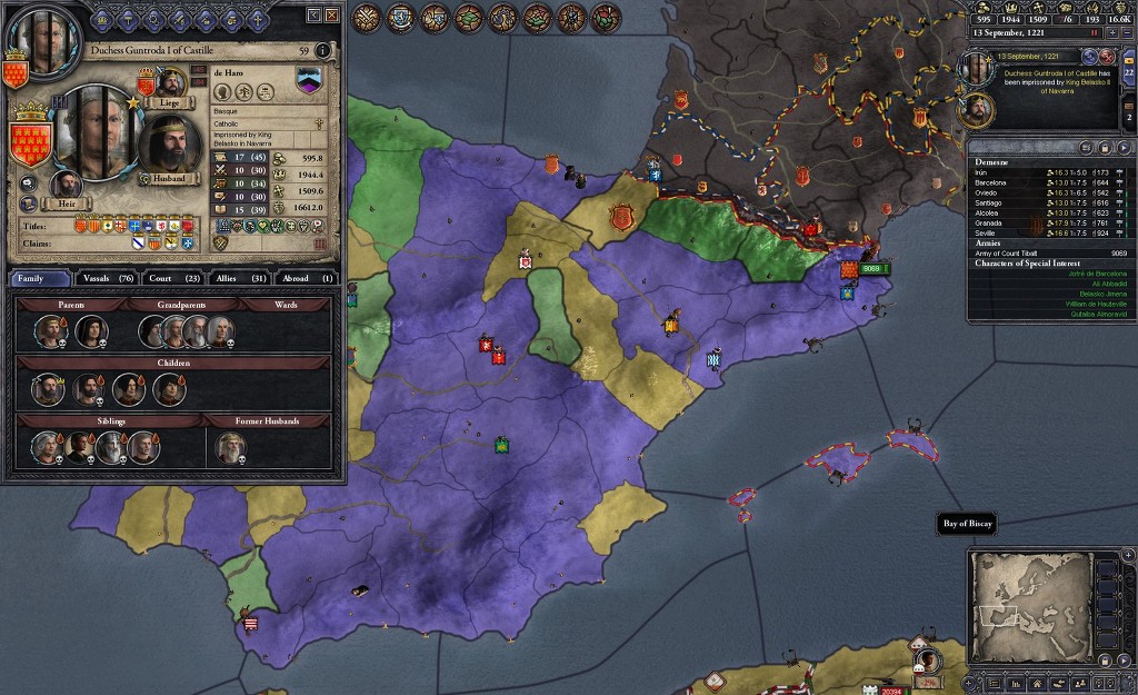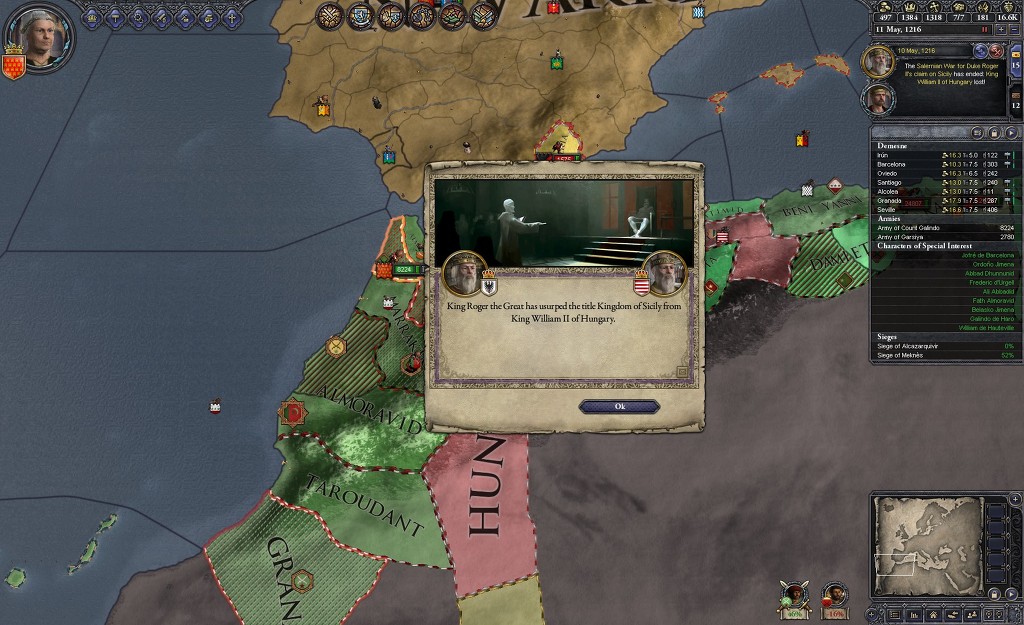 2013-03-08_00001 1220년 3월 2일 어미의 뜻을 알았는지 두 딸이 경쟁적으로 알메리아 백작령에 대한 클레임 확보에 성공합니다. 큰딸의 클레임으로 공략하기로 합니다. 작은딸은 일반 결혼을 하였기 때문에 자연 세습이 안되어서 자꾸 자식에게 타이틀을 줘 버리네요