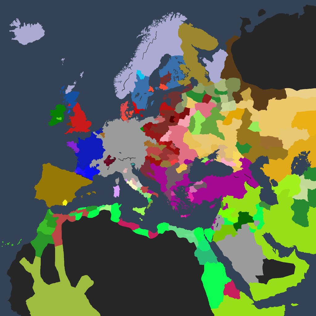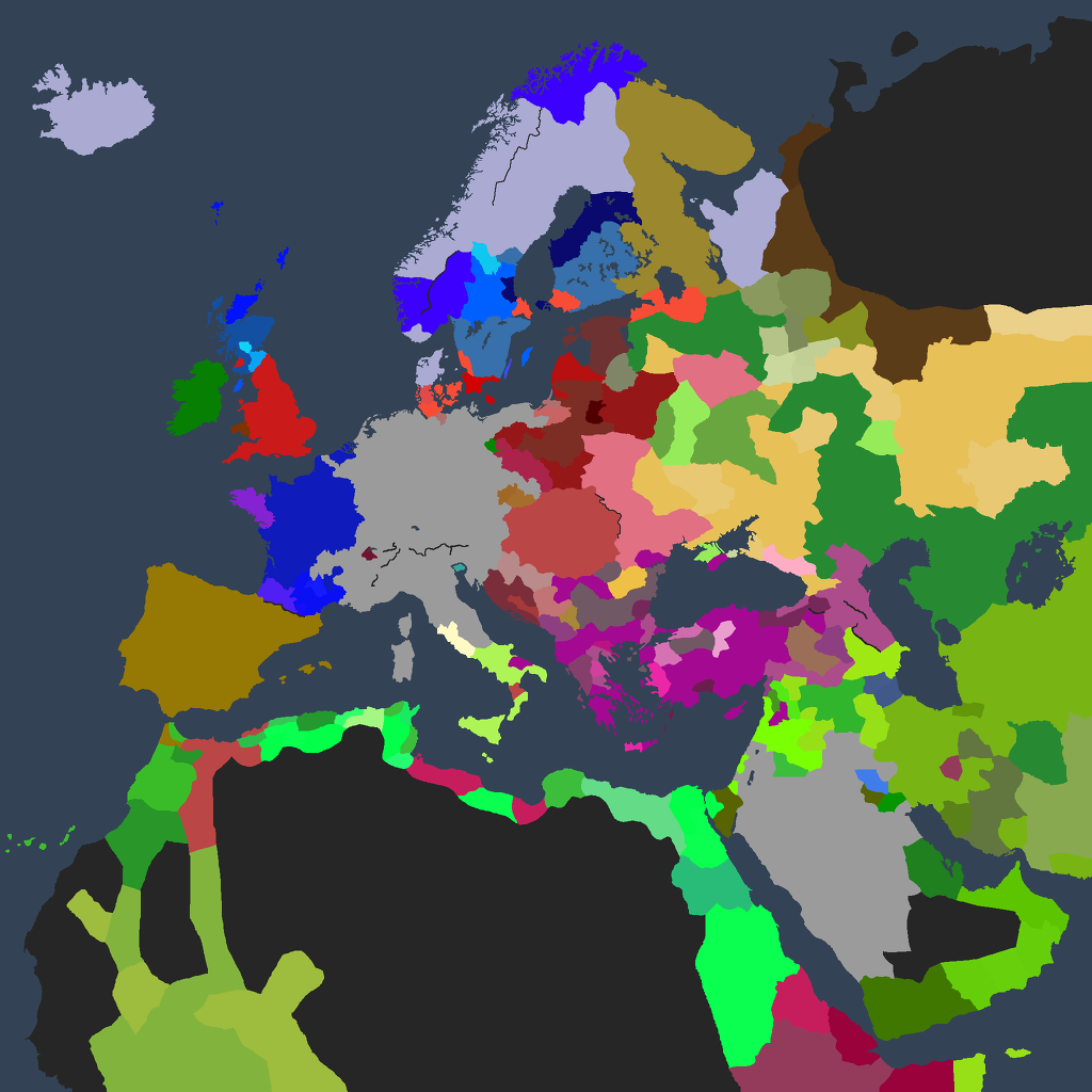 1227년의 판도 입니다. 비잔틴 제국은 갈갈이 찟기고 있고, 신롬은 일칸국의 이교도 공략을 틈타 아예 아라비아 반도에 굳건히 터를 잡았습니다. 헝가리 왕국의 내전은 끝나고 다시 통합되었습니다. 정리되는 동유럽과는 달리 북유럽은 다시 분열이 시작되고 있군요.