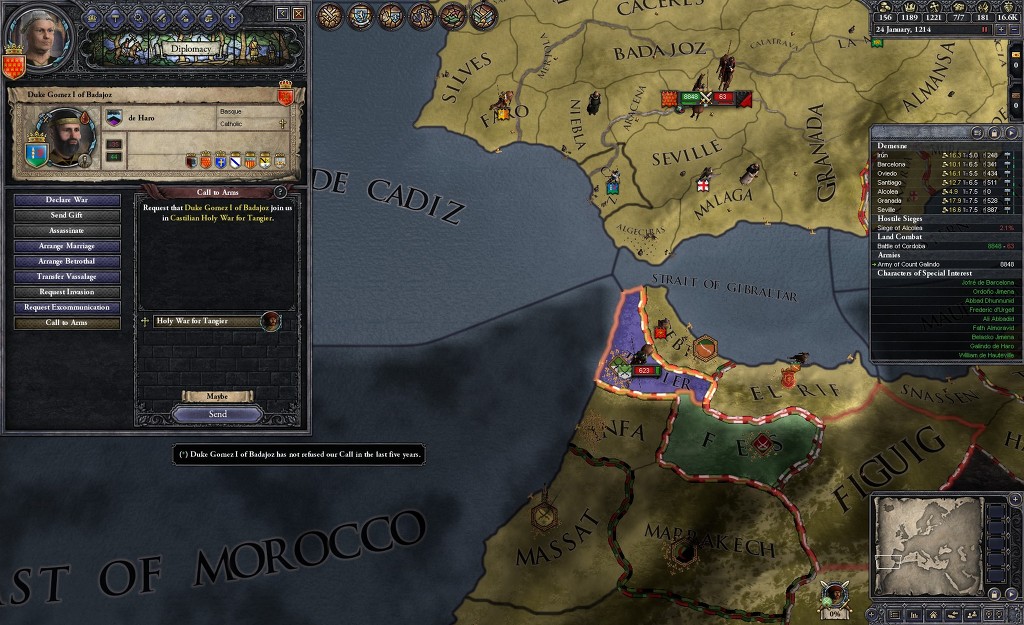 2013-03-07_00032 바다조즈 공작인 조카 고메즈에게도 원군을 요청합니다. 보내면 좋고 안보내면 동맹 위반의 죄를 물어보려 합니다