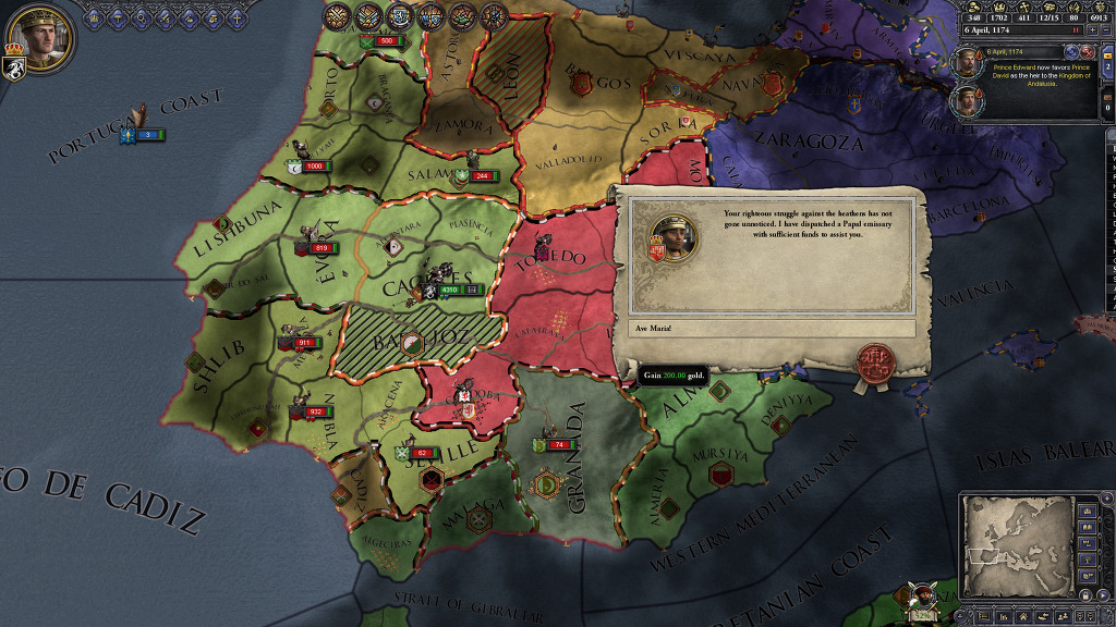성하께서 이교도척살에 기뻐하며 전쟁 지원금을 보내주는군요!