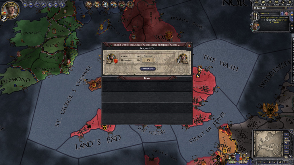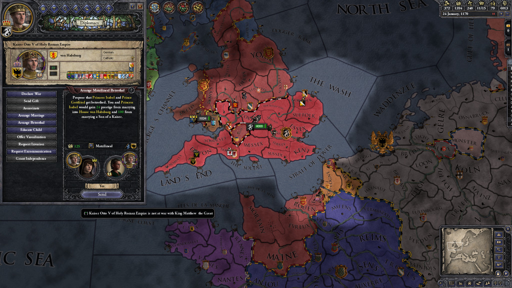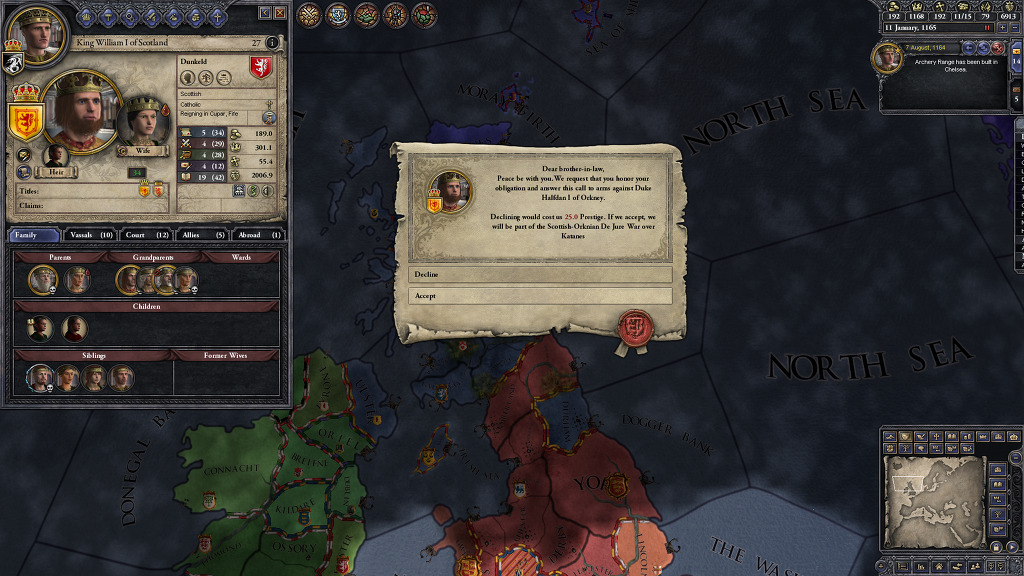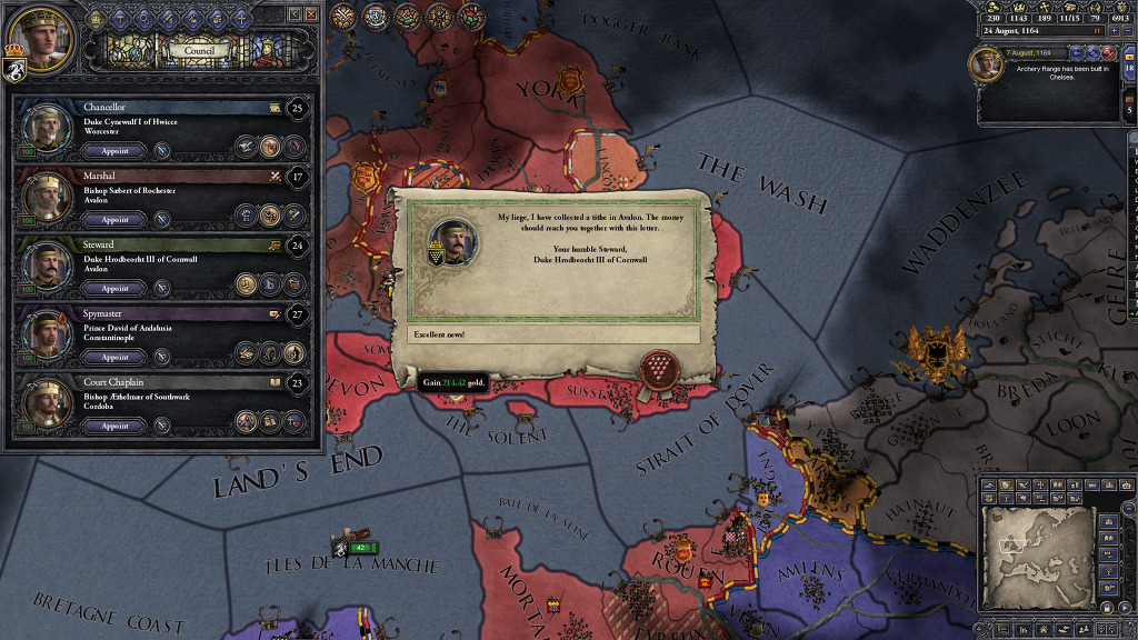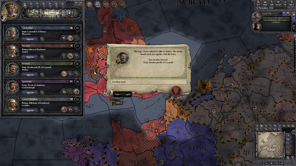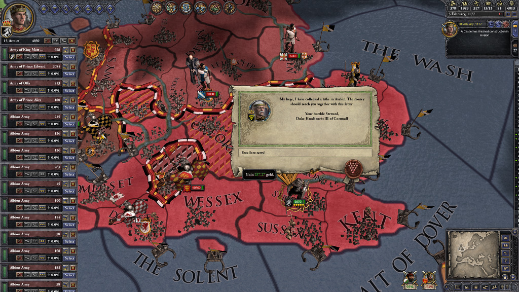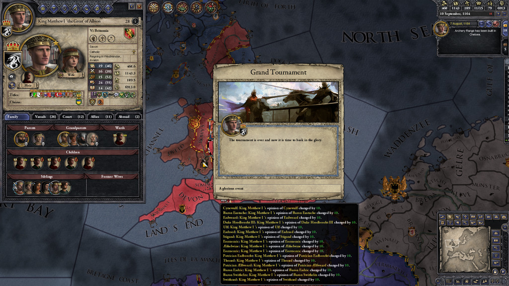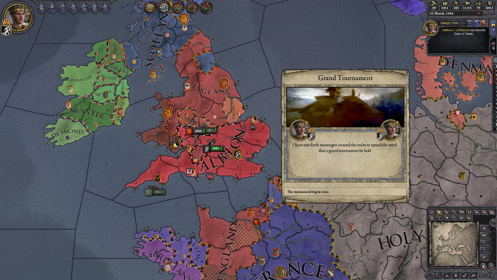 왕국기사대전을 성황리에 치르고 봉신들과의 유대를 돈독히합니다.