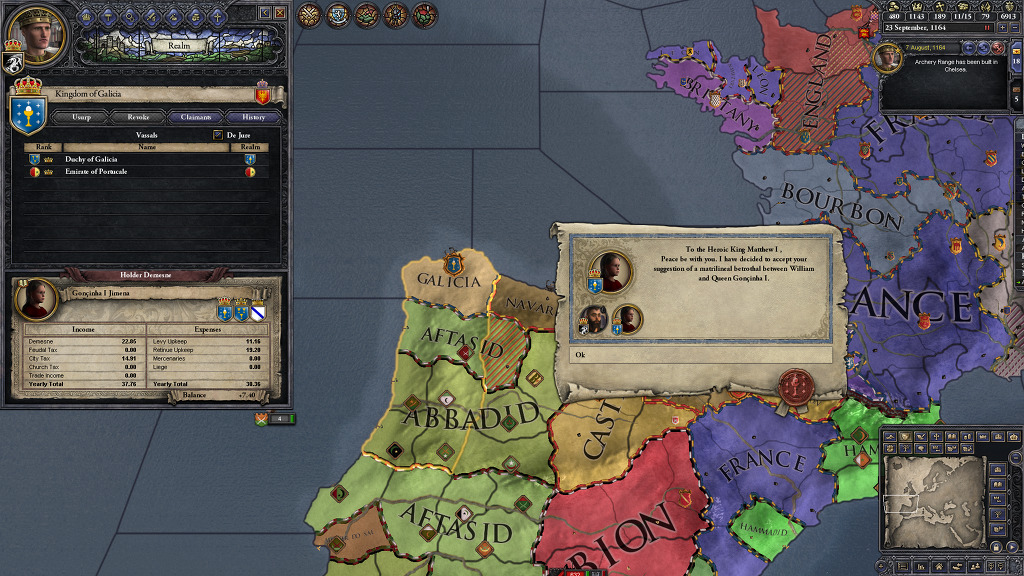 서자인 윌리엄을 이베리아의 소국 갈리시아 여왕과 혼인시킵니다.