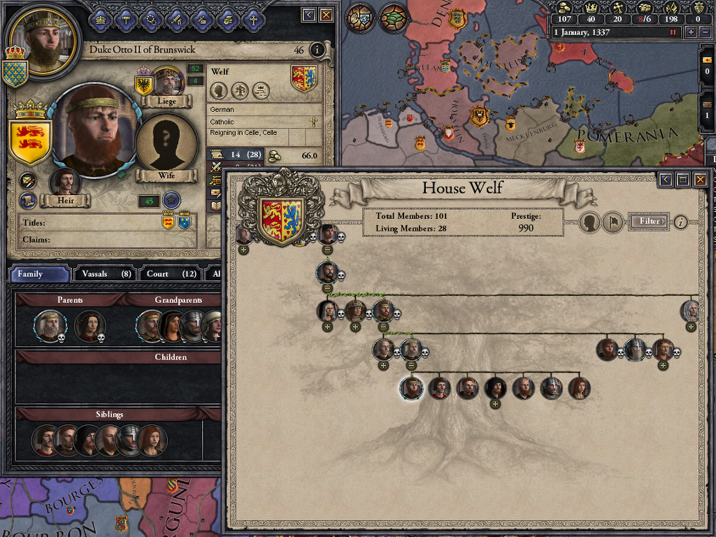 1337년 시나리오에서의 벨프 가문입니다... 오토 2세군요... 유아공 오토 1세의 손자입니다...
