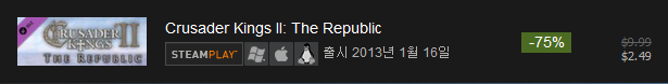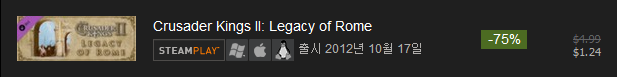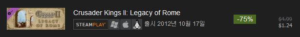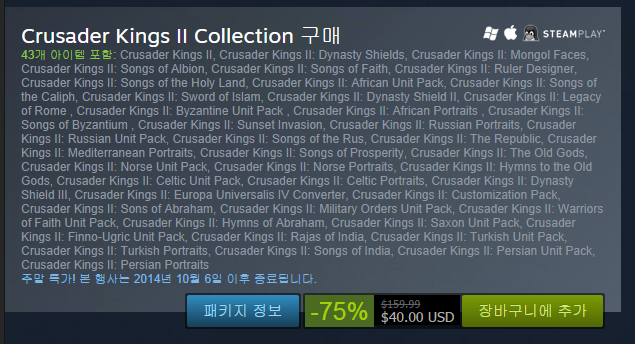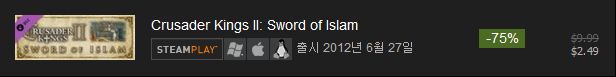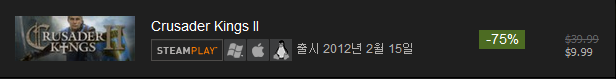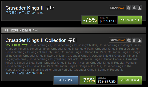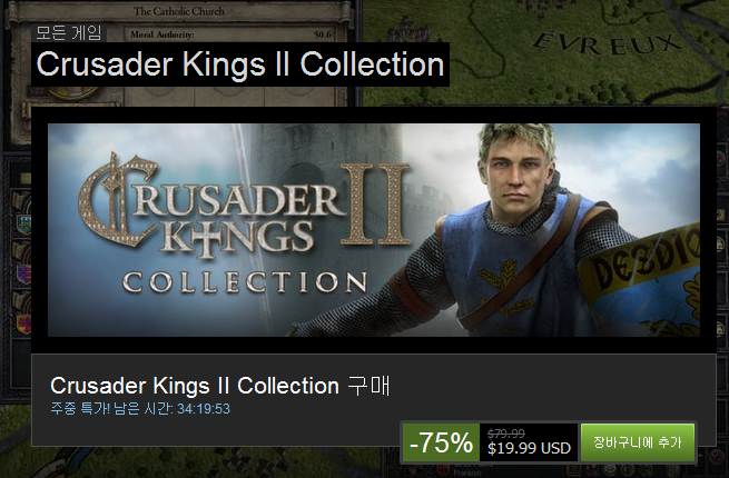 A. Crusader Kings 2 Collection : $79.99( 75% 할인 : $19.99 )