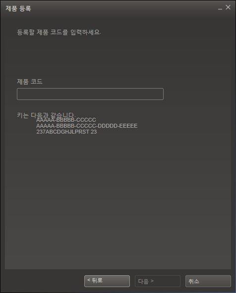 c. 새 창인 생성된 후, '다음'버튼을 누르다 보면, 아래와 같은 화면에서 '게임코드'를 입력해주고