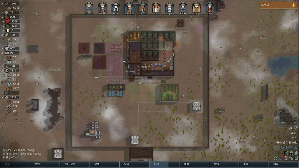 물론 이번플레이에선 저따위로 됐지만;;; 오른쪽 건물 안에 있는 재배시설 만으로도 10명+가축이 먹을 쌀이 생산이 되는군요.